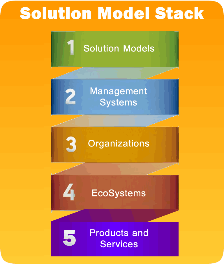 3) Another massive challenge was the synergistic nature of the whole project that necessitated that it had to be offered all at once. A piecemeal approach would not work because each piece requires the others to work. From top to bottom each Solution model, each management system, each set of organizations, each role of the organizations, each set of technologies, each set of products and services are all parts of a working whole.